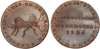 London , St. James St. William Stinton (grocer & tea-dealer) Halfpenny 1795, A grasshopper (name of his shop), rev. 3-line legend, edge ITALIAN FRENCH & PORTUGAL FRUIT WAREHOUSE, 28.25mm/9.04gm. (DH 904 ). Gem UNC toned with fair amount of original mint red.
