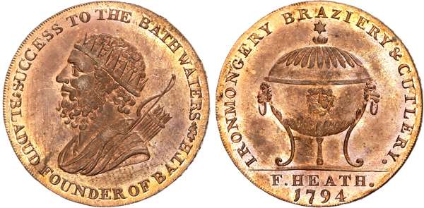 Som. Bath , Francis Heath (ironmonger, brazier and cutler) Halfpenny 1794, Bust left of Bladud, rev. tea-urn, edge PAYAB …