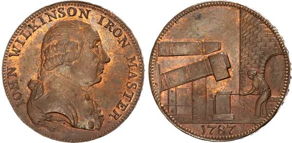Warks . West Midlands , John Wilkinson Halfpenny 1787, bust of Wilkinson right, rev. man at a drop hammer, edge WILLEY S …