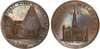 Angus . Dundee , John Pilmer (grocer), Wright’s Halfpenny 1797, View of glassworks and cone, rev. view of town hall, edge PAYABLE BY JOHN PILMER CHURCH LANE XX, 29mm/11.83gm. (DH 17), Gem UNC, evenly toned, marvellous iridescence and brilliance .