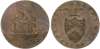 Hants . Portsea , George Sargeant (slop-seller) Halfpenny 1794, warship sailing right in laurel wreath, rev. family arms …