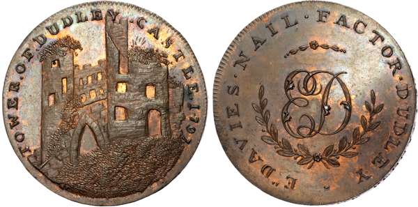 Worcs. Dudley , Edward Davies , Skidmore’s Penny 1797, View of ruined Tower of Dudley Castle, rev . ED cypher, edge I P …