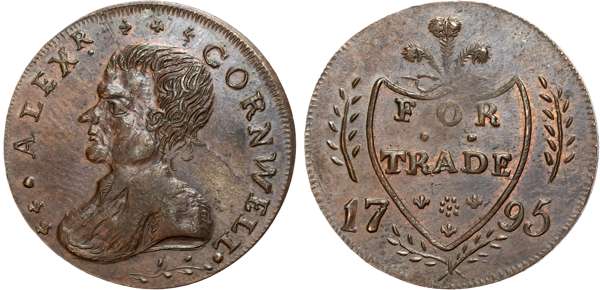 Co. Dub. Dublin , Alexander Cornwell Halfpenny 1795, Bust of Cornwell, rev. FOR TRADE ON SHIELD , edge plain. 29.3mm/9.7 …