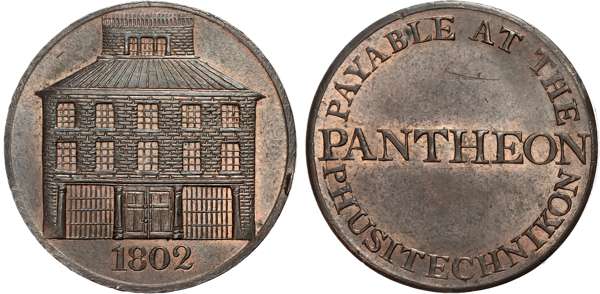 Co. Dub. Dublin , William Binns (Ironmonger) Halfpenny 1802, View of the Pantheon Museum, rev . ‘PANTHEON’, edge plain, …