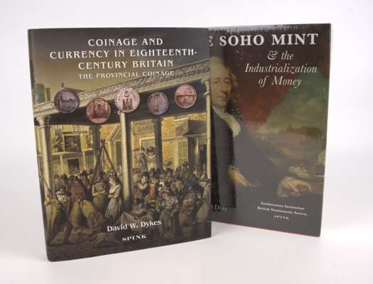 Doty, R. The Soho mint & The Industrialisation of Money, Spink London 1998, 360 pp, illustrations in text. Dykes, D. W., Coinage and Currency in Eighteenth-Century Britain, Spink, London 2011, 383pp, illustrations in text. Both as new, first still in sealed cellophane. [2]
