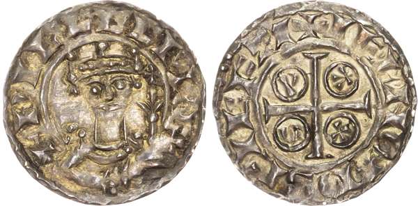 Facing crowned bust with sceptre to right, legend surrounding. Rev, cross pattée, each letter of PAXS in an annulet per angle, +IELNOD ON SCIEFTI, 1.38gm (S. 1257; N. 848). Good Very Fine, well struck, toned, rare.