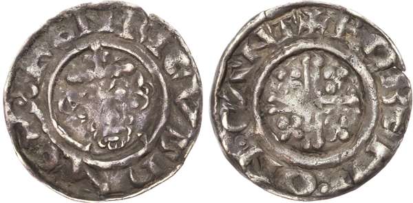 HENRICVS REX, crowned bust facing, holding sceptre left, Rev. ROBERD ON CANT, voided short cross, quartrefoil of pellets in each quarter, 1.34g/8h. (SCBI Mass 762, same rev. die; N. 967; S. 1347). Good Fine, full strike, toned.