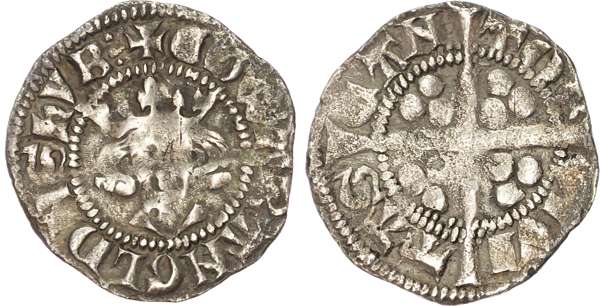 +EDWA R ANGL DNS HYB, crowned bust facing, Rev. CIVITAS CANTOR, long cross pattée, trefoil of pellets in each angle, 1.31g/3h. (N. 1065; S. 1465). Good Fine.