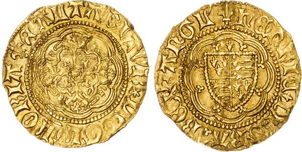 Henry VI (First Reign, 1422-1461) Quarter Noble, annulet issue (c. 1422-1430), London mint, mintmark large lis both sides