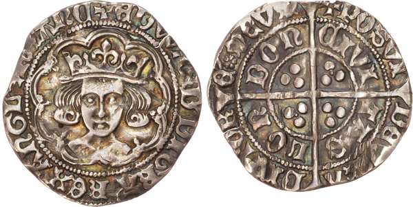 Type XIX, mintmark pierced cross. Fleurs on cusps, pellets by bust. Rev, saltire stops, rose before MEVM, extra pellet in CIVI and LON quarters, 3.27gm. Type XX/XIX, as previous, but no stops, no pellets by bust, 2.83gm (S. 2099, S. 2098; N. 1631; Stewartby p. 433-4, XIX, XX/XIX, the first pl. 27/470 this coin). Both Very Fine, the second on a wavy flan, very rare.