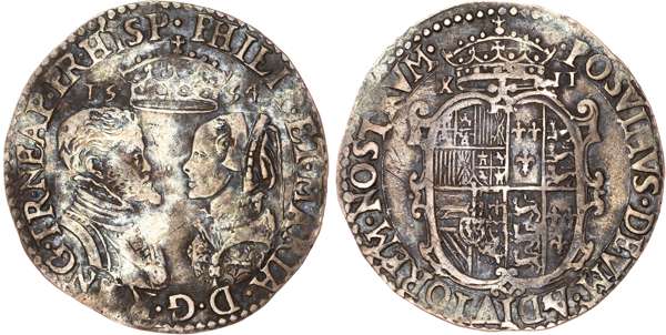 Busts vis-a-vis, crown above, dividing date, full titles. Rev, crowned and garnished shield dividing value, reads POSVIMVS DEVM ADIVTOREM NOSTRVM, 6.00gm (S. 2500; N. 1967). About Very Fine, toned.