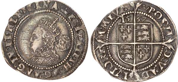 Elizabeth I (1558-1603) Sixpence, 1567, third and fourth issues, mintmark coronet.