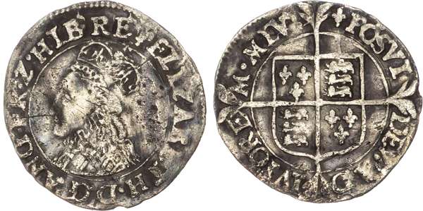 Elizabeth I (1558-1603) Halfgroat, mintmark lis. Crowned bust left, wire line inner circles both sides.