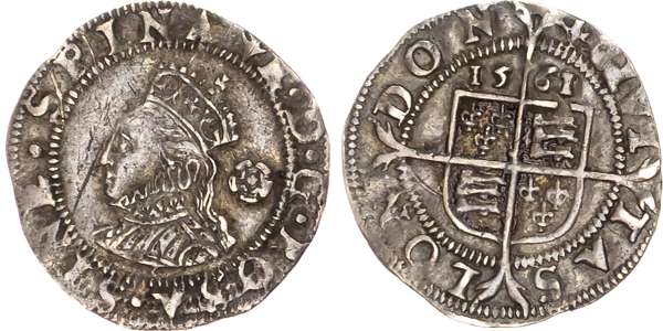 Elizabeth I (1558-1603) Threehalfpence, 1561, third and fourth issues, large flan, mintmark pheon.