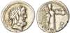 Laureate head of Zeus facing right, S•C behind. Rev. L•PROCILI, Juno Sospita advancing right, preparing to hurl spear and holding shield decorated with a thunderbolt motif. (Crawford 379/1; Sydenham 771). Good Very Fine.