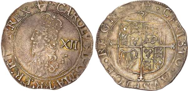 Charles I (1625-1649) Shilling, Tower Mint, Group E, fifth bust, type 4.1 variety.
