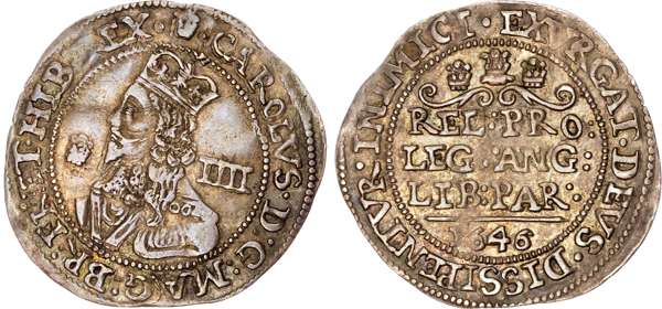 Charles I (1625-1649) Groat, Bridgnorth-on-Severn mint, 1646, mintmark plumelet on obv. only.