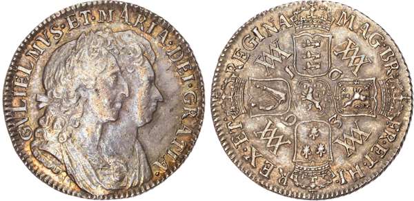 William and Mary (1689-1694), Shilling, 1693, stop after GRATIA.