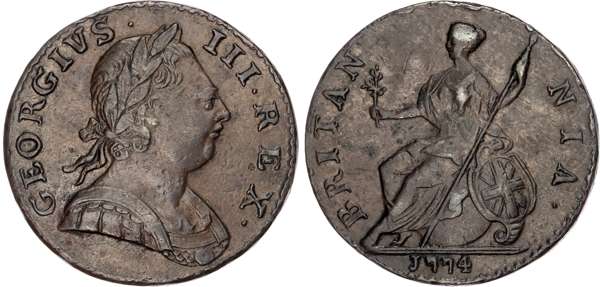 George III (1760‑1820), AE Halfpenny, First Issue, Tower Mint, 1774.