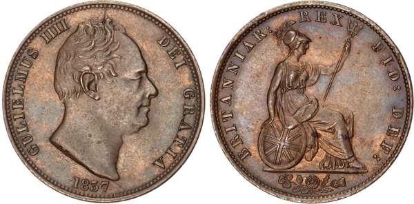 William IV (1830‑1837), AE Halfpenny, 1837.