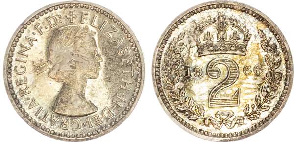 Elizabeth II (1952‑2022), AR Maundy Set, Westminster Abbey, 1966 [4].
