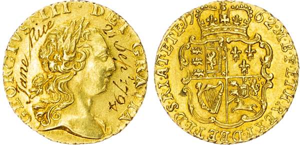 George III (1760-1820) Quarter Guinea Love Token, 1762.
