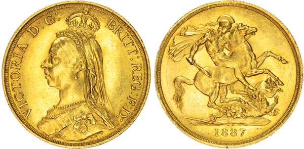 Victoria (1837-1901) Two Pound, 1887, large B.P., large date.