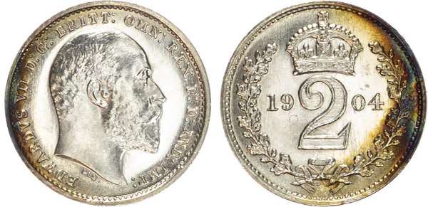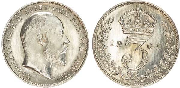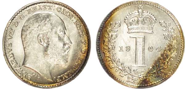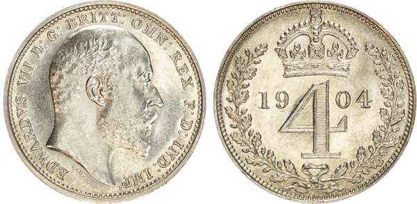 1904, Fourpence, Threepence, Twopence, Penny. Bare head right, Rev, crowned mark of value with date either side all within oak wreath (S. 3985; Bull 3610; ESC 2520). All coins virtually as struck, lustrous (4).