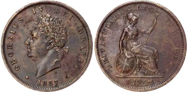 George IV (1820-30), Penny, 1827, second issue.