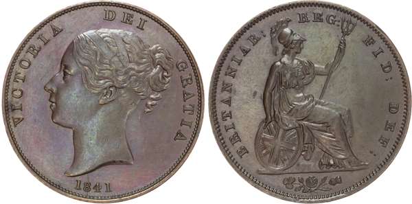 Victoria (1837-1901), Penny, 1841, with Colon.