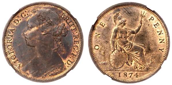Victoria (1837-1901), Penny, 1874.