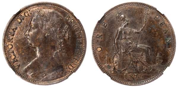 Tooth border, young head left, rev. Britannia seated, with shield and trident, (Fr.80, dies 8+J; BMC.1701; Gouby B; S.3954;). Hint of lustre. Encapsulated by NGC as MS61 BN.