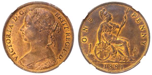 Tooth border, young head left, rev. Britannia seated, with shield and trident, (Fr.119, dies 12+N; BMC.1733; Gouby A; S.3954). Considerable red mint lustre. Encapsulated by NGC as MS64 RB.