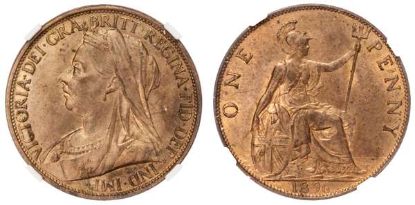 10 teeth from the foot of the 1 to the centre of the 6, old head left, rev. Britannia seated, with shield and trident, (Fr.143, dies 1+B; BMC.1942; Gouby A; S.3961). Practically full lustre. Encapsulated by NGC as MS64 RB.