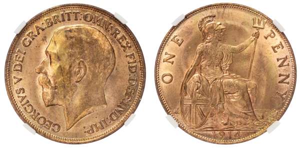 Barehead right, rev. Britannia seated with shield and trident, (Fr.178, dies 2+B; BMC.2248; S.4051). Full red mint lustre. Encapsulated by NGC as MS64 RD.
