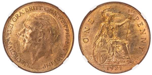Barehead right, rev. Britannia seated with shield and trident, (Fr.197, dies 4+C; BMC.2267; S.4054). Full mint red lustre. Encapsulated by NGC as MS65 RD.