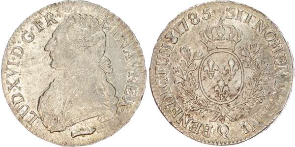 France, Louis XVI (1774-1793), silver Ecu, 1785 Q, Perpignan, 29.27g (KM 564.13). About Extremely Fine.