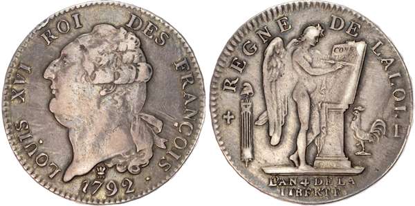 France, Louis XVI (1774-1793), silver Ecu, 1792 I, Limoges, 29.13g (KM 615.8). Good Very Fine, small edge flaw to 11 o’clock, deep cabinet tone.