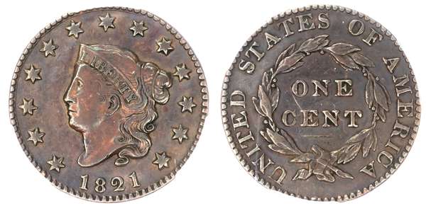 USA, Coronet Head copper Cent, 1821