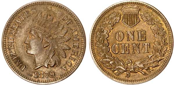 USA, Indian Head bronze Cent, 1879, Philadelphia, 3.00g (KM 90a). Uncirculated.