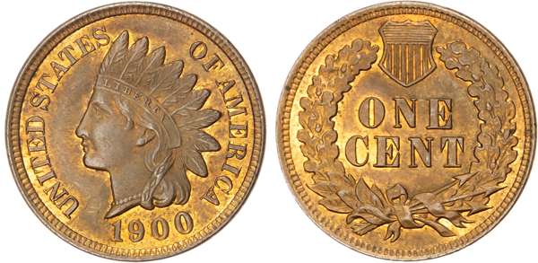 USA, Indian Head bronze Cent, 1900, Philadelphia, 3.00g (KM 90a). Uncirculated, peripheral red lustre.