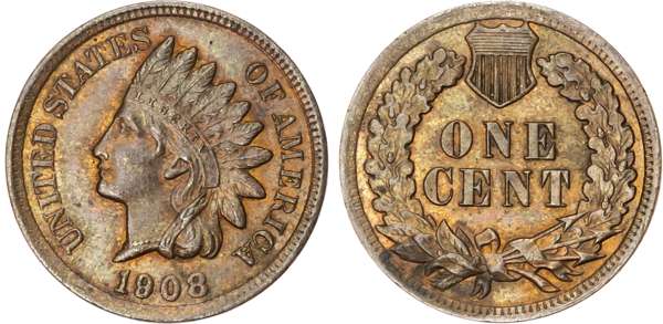 USA, Indian Head bronze Cent, 1908, Philadelphia, 3.00g (KM 90a). Uncirculated, some red lustre preserved.