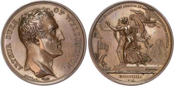 Wellington’s Army Arrives in the Peninsula 1808, AE medal (1820) by N. Brenet for Mudie's British Victories Series.