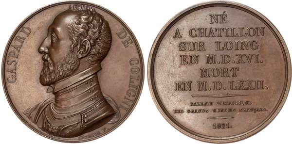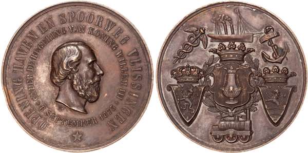 France, Caspard de Cologni Death 1672 AE medal 1821, 41mm/36.78g. Netherlands, Opening of Vlissingen Port and Railway 1873, AE medal 50.5mm/48.2gm. All about Extremely Fine and toned. [3]