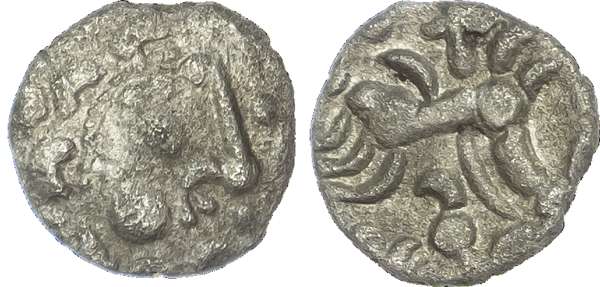 Dobunni, Uninscribed (c. 35‑30 BC) AR Unit, ‘Cotswold Eagle’ type, 0.85g.