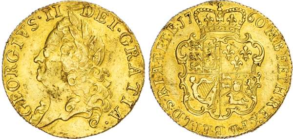 George II (1760‑1820), 'Old Head' Guinea, 1760, old laureate head left, reverse crowned garnished shield, (EGC 624 (R2); S.3680). Bold good very fine to near extremely fine. Some scuffing and marks