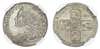 George II (1727‑60), Sixpence, 1757. Old laureate and draped bust left, legend surrounds GEORGIVS II DEI GRATIA. Rev, crowned cruciform shields, six strings to Irish harp, garter star at centre, date flanking top crown, reads M.B.F. ET. H. REX. F.D. B.ET. L. D. S. R. I. A. T ET. E. (S. 3711; Bull 1762; ESC 1622). In NGC holder graded MS 63 (6770019‑001), difficult to find in such high grade due to circulating widely.