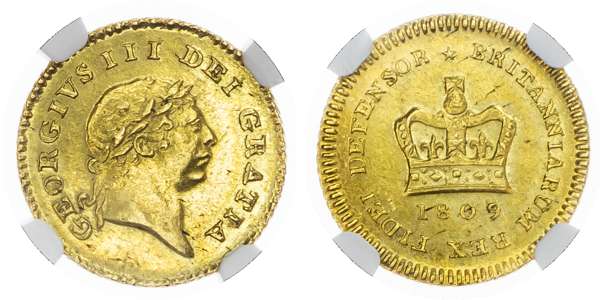 George III (1760‑1820), Third‑Guinea, 1809, second laureate head right, reverse crown, (EGC 878; S.3740). Encapsulated by NGC as AU58
