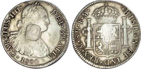 George III (1760‑1820), Emergency Issue, Octagonal‑Countermark Dollar (8‑Reales), 1800