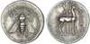 Ionia, Ephesos (c. 202‑150 BC) AR Drachm, 4.13g. E‑Φ, bee with straight wings. Rev. AΔAIOΣ, stag standing right, palm tree to right. (Kinns, Attic p. 84; SNG Copenhagen ‑; SNG von Aulock ‑). Extremely Fine. A nearly perfectly struck obverse with a full border of dots.